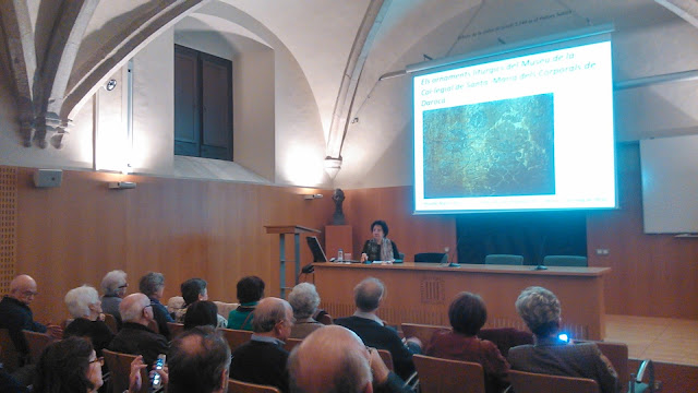 El passat dilluns, 2 de maig de 2016, va tenir lloc a la sala Pere i Joan Coromines, la conferència «Els ornaments litúrgics del Museu de la Col·legial de Santa Maria dels Corporals de Daroca», a càrrec de la Sra. Rosa M. Martín Ros, historiadora de l’art.