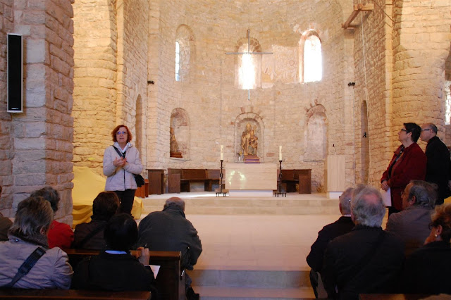 La descripció de l’església a nivell estilístic i la seva evolució històrica va anar a càrrec de la Dra. Montserrat Pagès que va poder exemplificar “in situ” el contingut de la conferència del dilluns anterior.