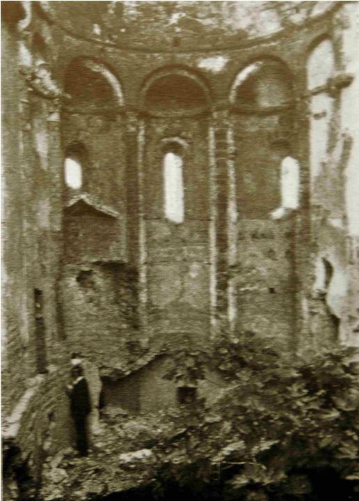 Sant Pere d’Ager durant la restauració de Puig i Cadafalch. |