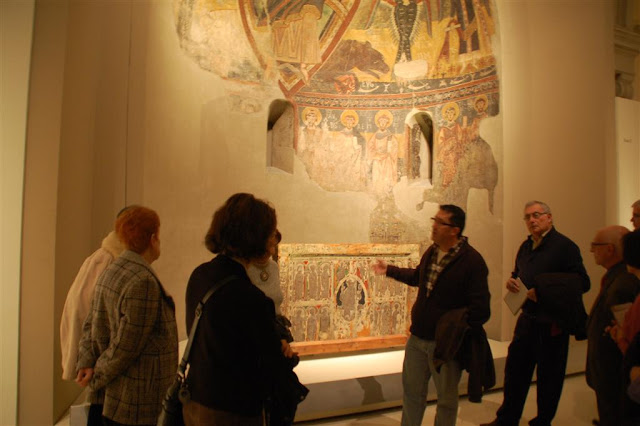 Dissabte 28 de gener de 2012 es va fer una visita comentada a les sales de romànic del MNAC amb l’objectiu de comentar el nou muntatge i distribució de les peces. L’èxit de la convocatòria, més de 40 persones inscrites, va comportar, degut a la normativa del museu, la realització de la visita en dos grups. La sessió es va iniciar amb una introducció de la presidenta, Dra. Francesca Español, que va remarcar la forma en què es va constituir la col·lecció d’obres romàniques del MNAC i seguidament es van fer dos grups, un conduït per la mateixa Dra. Francesca Español i l’altre per en Joaquim Graupera.